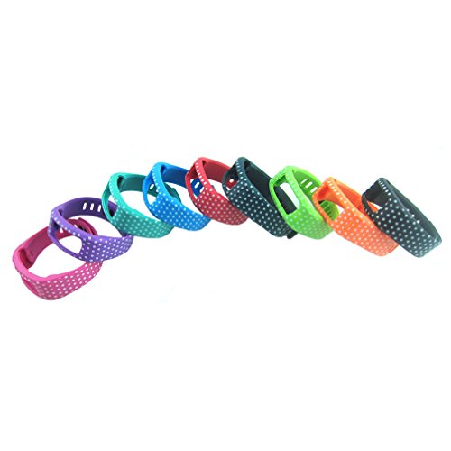 2015 Fashion 9pcs Colorful with White Dots Spots Replacement Wrist Band for Garmin Vivofit(No tracker, Replacement Bands Only),Small