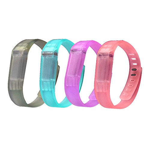 AFUNTA Set Large L 1pc Pink 1pc Teal 1pc Purple 1pc Slate Transparent Replacement Bands with Clasps for Fitbit FLEX Only /No tracker/ Wireless Activity Bracelet Sport Wristband Fit Bit Flex Bracelet Sport Arm Band Armband
