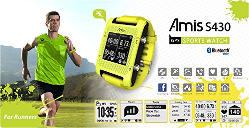 The Amis S430 is a perfect GPS sports watch for runners of all levels. It incorporates an impressive watch body and stylish wrist straps making it a sporty and fashionable watch suitable for every occasion. The Amis S430 delivers real-time pace, distance, stride, LAP info and much more as you run. The convenience of weather forecast and incoming call notifications through Bluetooth Smart technology make the Amis S430 an ideal GPS sports watch for all runners. And with built-in metronome, pace calculator, stopwatch, and customizable interval training, you are able to train smart and monitor your progress easily. Run with the Amis S430 and let running goals become easier than ever.