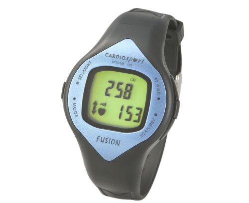 The Cardiosport Fusion 30 Heart Rate Monitor uses a low frequency digital transmission system with improved signal and coding to allow exercise in close proximity to other monitors without any interference. This monitor has a 10-hour stopwatch with a countdown (interval) timer, including single and repeat modes. A step up from the Fusion 20, the Fusion 30 features a personalized calorie counter based on your exercise intensity, age, and weight. There is also a time-in-zone display where your heart controls an additional stopwatch so you can track exercise time at a target level. The monitor features a large, clear LCD screen with two rows of information -- a zone indicator to show exercise heart rate and a exercise time. And you can even view your stats in the dark with the bright, electroluminescent light. The Fusion 30 has a hands-free scan feature showing how long and how hard you've been exercising. This can be viewed during your work-out to check progress, and after exercise from the handy memory recall. The memory is automatically reset whenever you start a new session.