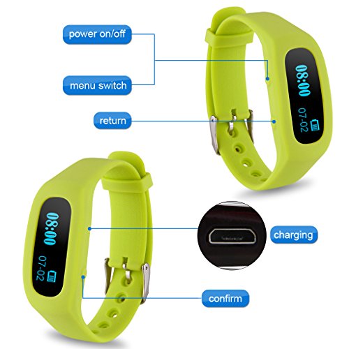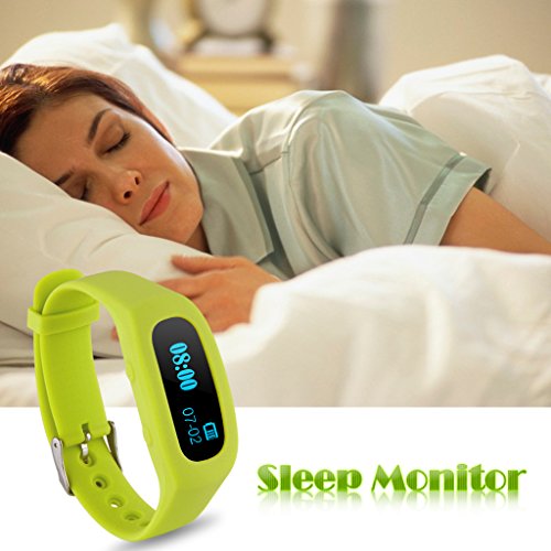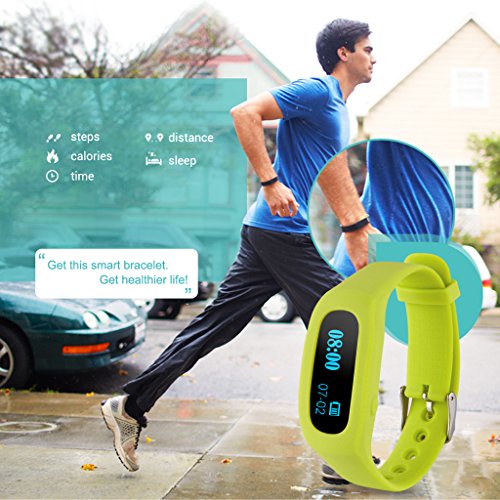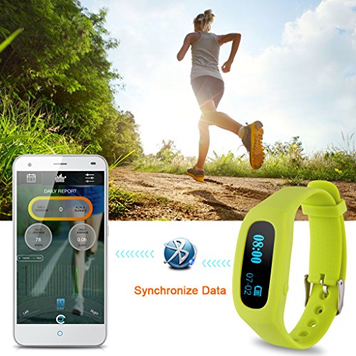 Excelvan OLED Smart Healthy Sport Bracelet Bluetooth V4.0 Wristband with Pedometer/Tracking Calorie/Remote Capture/Sleep Monitoring / Compatible with Android and IOS (Yellow green) Rating:
