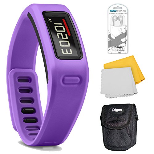 Garmin Vivofit Fitness Band with Heart Rate Monitor (Purple) Plus Accessory Bundle. Bundle Includes Xtreme Audio Earbuds with Microphone, Deluxe Case, and Micro Fiber Cleaning Cloth