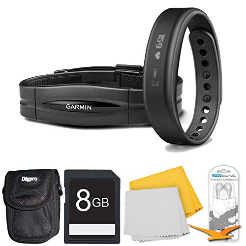 Bundle Includes vivosmart Activity Tracker Heart Rate Monitor Ultra-Compact Digital Camera Deluxe Carrying Case Splash Stereo Earbuds Micro Fiber Cleaning Cloth 8GB SD Memory Card Activity Tracker Plus Smart Notifications Displays steps, calories, distance and time of day Vibration alerts for calls, texts and emails from your smartphone Easy operation using touch and swipe Inactivity alert reminds you to move Auto goal keeps you challenged Bundle includes a heart rate monitor Tap to See Stats vivosmart features a sleek, invisible display that comes to life when you get a notification or when you give the band a tap. Then the OLED display shines through the band to reveal your steps, distance traveled, calories burned, time of day and more. vivosmart automatically syncs your data to Garmin Connect, our online fitness community, when you use the free app on your compatible Bluetooth device. You can also access Garmin Connect on your computer. Smart Notifications Stay active and connected with vvosmart wearable technology. Each time you receive a text, email or call from your compatible Bluetooth device, vivosmart gently vibrates and automatically displays the information. Simply touch and swipe the screen to read more. Tells Time and "Time to Move" Research shows prolonged periods of inactivity, like sitting, decrease your body's production of fat-burning enzymes. The good news: that can be reversed with frequent, short walk breaks. You might lose track of time but vvosma...