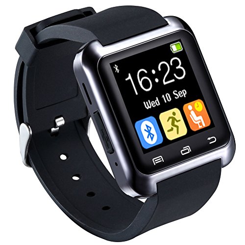 HopCentury Bluetooth Smart Watch Support Android Apk Notifier Android Cellphones with Sleep Monitor Pedometer Stopwatch Anti Lost Drink/Rest Reminder, Support iPhone with Partial Functions (Black)