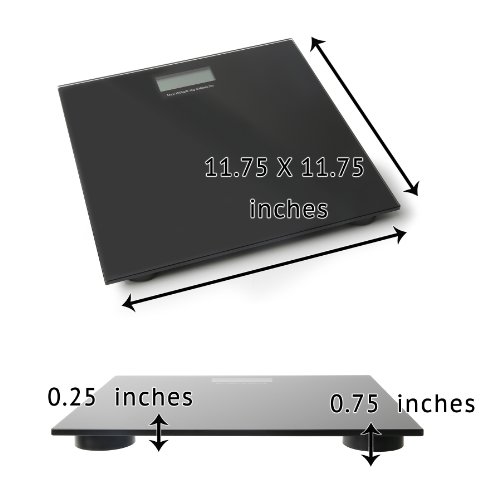 from 32°F to 104°F. Simply drop in 1 CR2032 batteries, and step onto the 11.8" x 11.8" glass