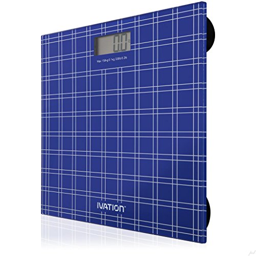 Ivation Ultra Thin LCD Tempered Glass Digital Bathroom & Gym Scale - Super Accurate HighPrecision Strain Gauge Sensor System - 330-Pound Load Capacity, Blue Rating: