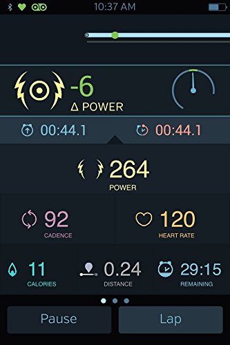 • Auto calculated wattage and HR zones show current, average, max heart rate and total time spent in each training zone during workout