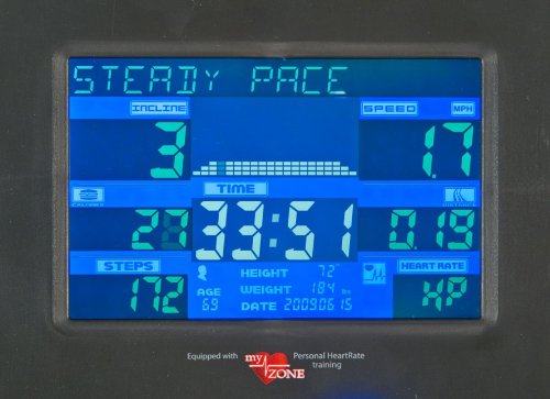In addition to the preset programs, the treadmill offers two My Zone heart rate control programs and two custom programs. The My Zone Constant program keeps your heart rate at a constant level--thereby using your heart rate as a fitness tool--while the My Zone Interval program lets you enter your own minimum and maximum hear rate. As you exercise, the treadmill speed and incline will automatically adjust to keep your heart rate at the preferred level. By contrast, the custom programs are fully adaptable to your favored workout formula. That's because you're in charge of setting the speed and incline level for each of the 20 program segments, and then saving them for future use.