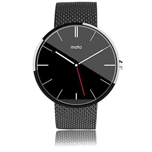 Lucco Wire Mesh Watchbands Watch Strap Bracelet for Motorola Moto 360 Moto360 Smart Watch Smart Phone with Screen Protector (Mesh Black)