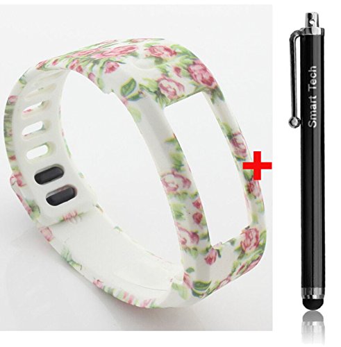 Smart Tech Store Roses Flowers White Replacement Band With Clasp for Garmin Vivofit Only /No tracker/ Wireless Activity Bracelet Sport Wrist band Garmin Vivo fit Bracelet Sport Arm Band Armband