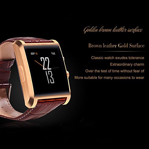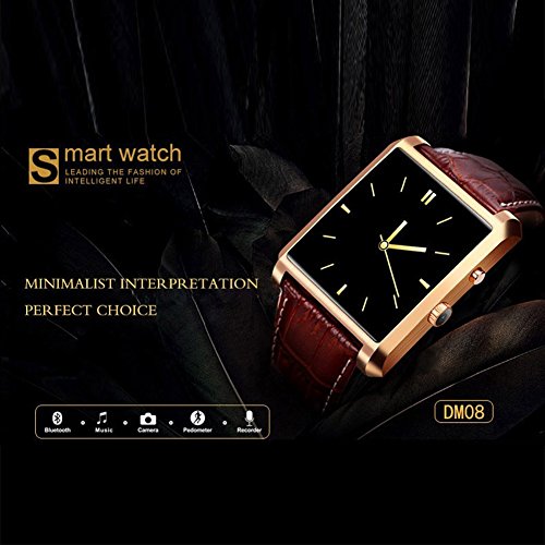 Soyan 2015 latest DM08 Bluetooth watch Hd camera For Android System Sync whatsapp facebook Pedometer And For IPh(partial functions) with Gift box (Gold)