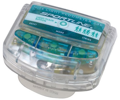 Ideal for activity at night or in low visibility conditions, the Sportline 348 pedometer is great for all walkers, hikers, and joggers. It features a solid or flashing red light that will help keep you visible to traffic. The 348 accurately measures steps you take, and it features both automatic and manual stride measurement (adjustable from 1 to 8 feet) to assist you with accurate stride length setting. The pedometer will measure your distance in miles and fractions of miles as well as in kilometers, and it measures up to 1,000 miles/kilometers in 1/100 (0.01) increments. It has a large, easy-to-read LCD and it clips easily and snugly to either side of your pants or shorts.