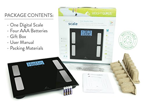 Weight Gurus Digital Body Fat Scale with Large Backlit LCD and Smartphone Tracking (black)