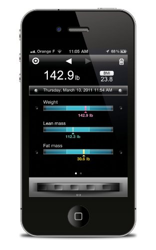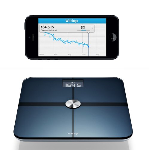Monitor your body weight like never before with the Withings Wi-Fi Body Scale, a digital wireless body fat monitor. This bathroom scale uses a Wi-Fi connection to sync your weight, BMI, and body fat readings with your personal health dashboard. See graphs, track your progress, and motivate yourself to maintain a healthy weight. Access Your Health Data Online or on Your Smartphone: The Withings Wi-Fi Body Scale is packed with technology, yet it's simple to use. Just step on the scale and it will automatically sync your weight, BMI, and body fat readings with a personal health dashboard available on your smartphone and also directly on Withings.com. Easily monitor the evolution of your weight thanks to a rich, relevant view of all your weight data collected by the scale, with no time limitation and in total confidentiality. Free iPhone, iPad and Android applications are available on the Apple App Store and Android Market for you to turn your smartphone into your very own fitness coach, always available in your pocket. Stylish, Accurate Healthcare Tool: Powered by four 1.5-volt AAA alkaline batteries (included), this high-tech scale's black-and-steel design makes it an attractive addition to any décor. And this scale is just as accurate as it is good looking--it features four sensors and measures in graduations of 0.2 pounds, accepting a maximum weight of 396 pounds. The Withings scale can measure precisely your muscle mass and fat mass so you can see the real impact of your efforts. The accuracy of its measurements makes it the ideal tool to monitor your health and fitness. Scale Offers Creative Ways to Keep Fit: